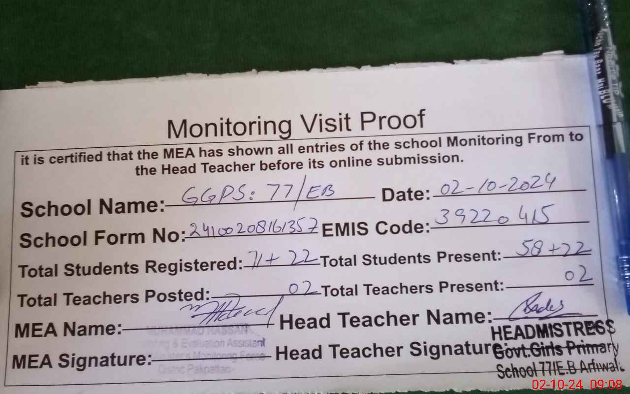 | EMIS Code: 39220415 | Name of School: GGPS 77 EB ARIFWALA | |||