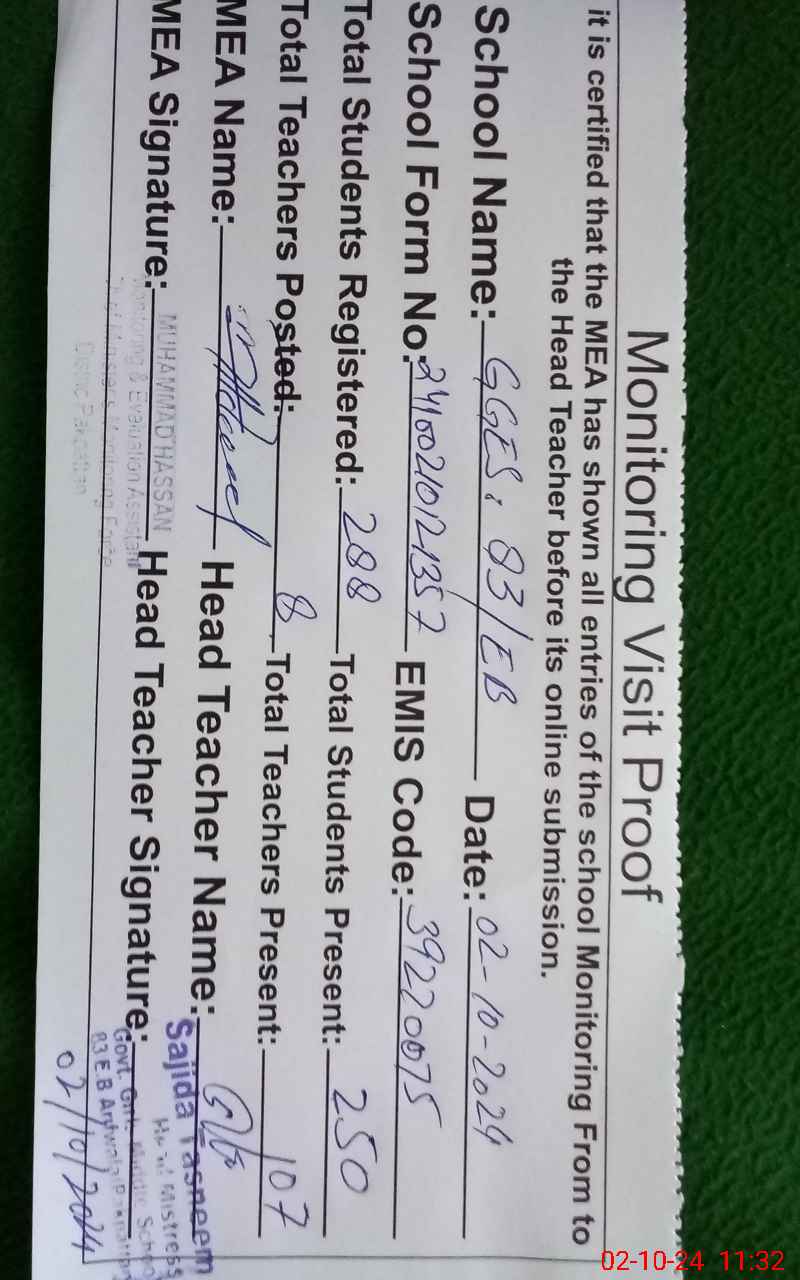 | EMIS Code: 39220075 | Name of School: GGES 83 EB | |||