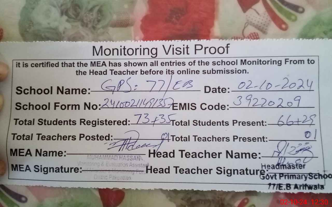 | EMIS Code: 39220209 | Name of School: GPS 77/EB | |||