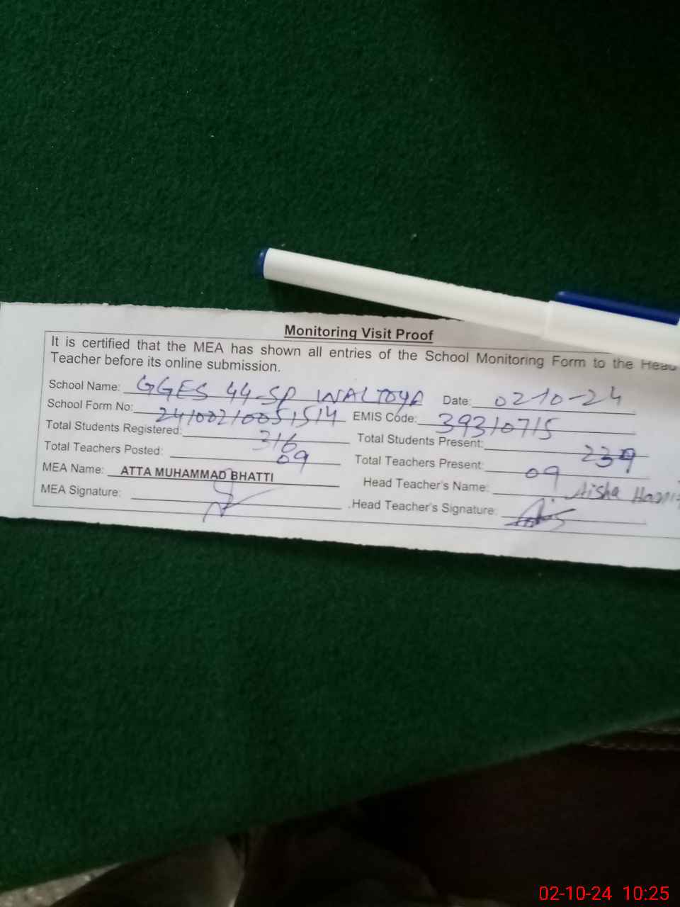 | EMIS Code: 39310715 | Name of School: GGES CHAK NO. 44/SP WALTOYA | |||