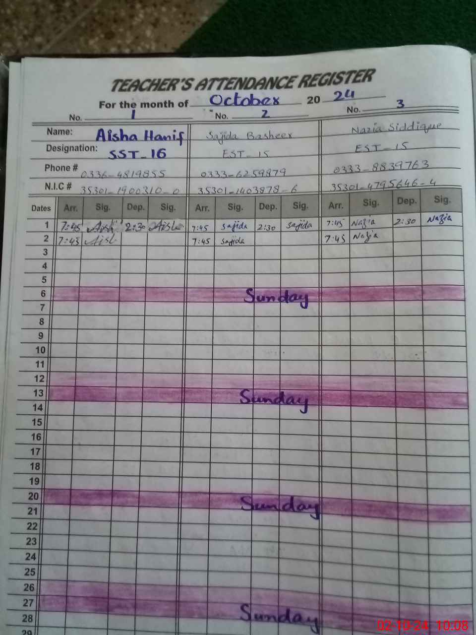 | Name: AI**** HA**** Designation: (School Headmaster's/Headmistress's) SST GENERAL Phone/Cell Number: 03**** |