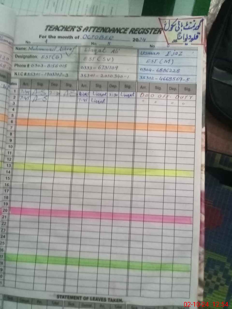 | Name: IF**** AH**** Designation: (School Headmaster's/Headmistress's) SST INCHARGE HM Phone/Cell Number: 03**** |