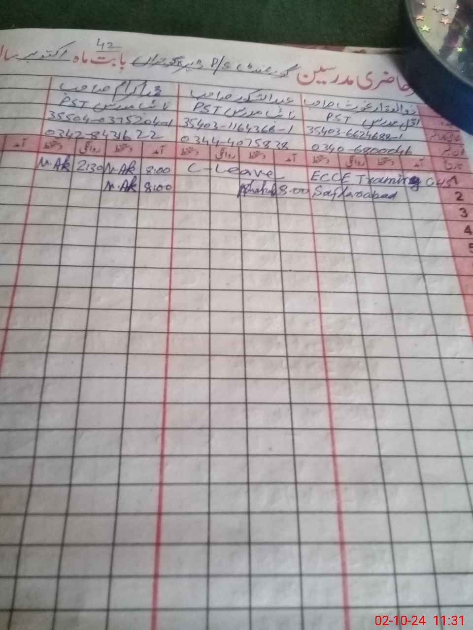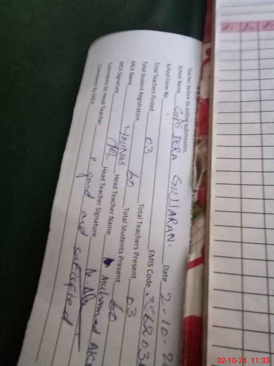 | Name: ZU**** GH**** Designation: (School Headmaster's/Headmistress's) PST Phone/Cell Number: 03**** |