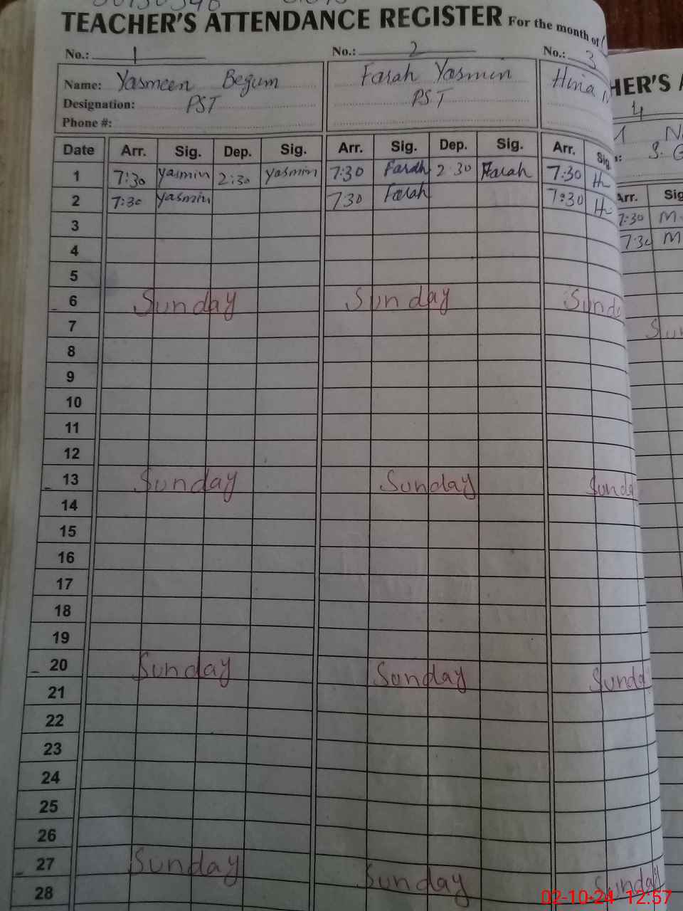 | CNIC | Full Name | Designation | R/C | Absence During Last Calender Month |