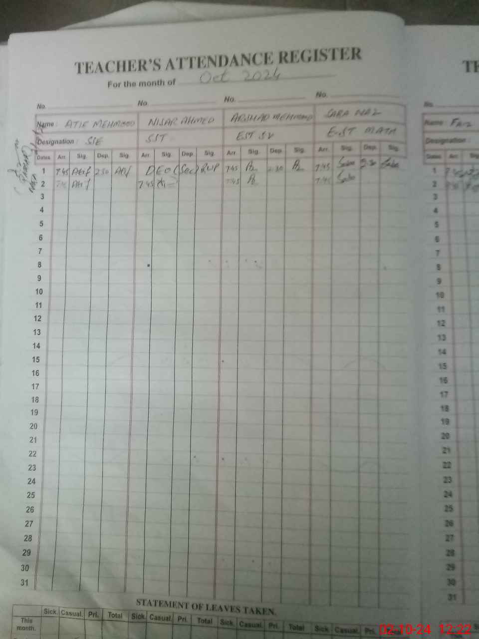 | Name: At**** Me**** Designation: (School Headmaster's/Headmistress's) S.S.E Phone/Cell Number: 03**** |