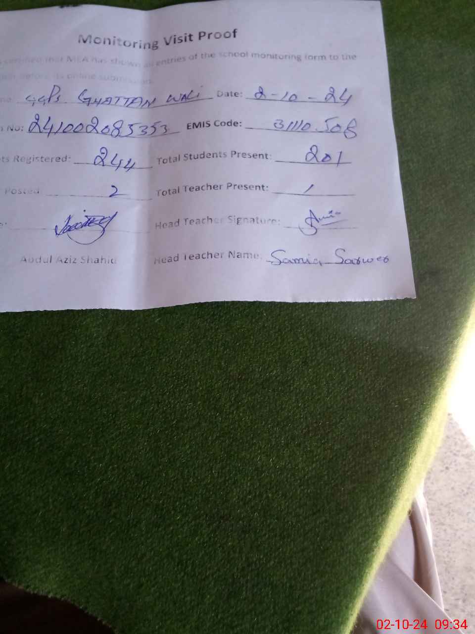 | EMIS Code: 31110508 | Name of School: GGPS GHATTIAN WALI | |||