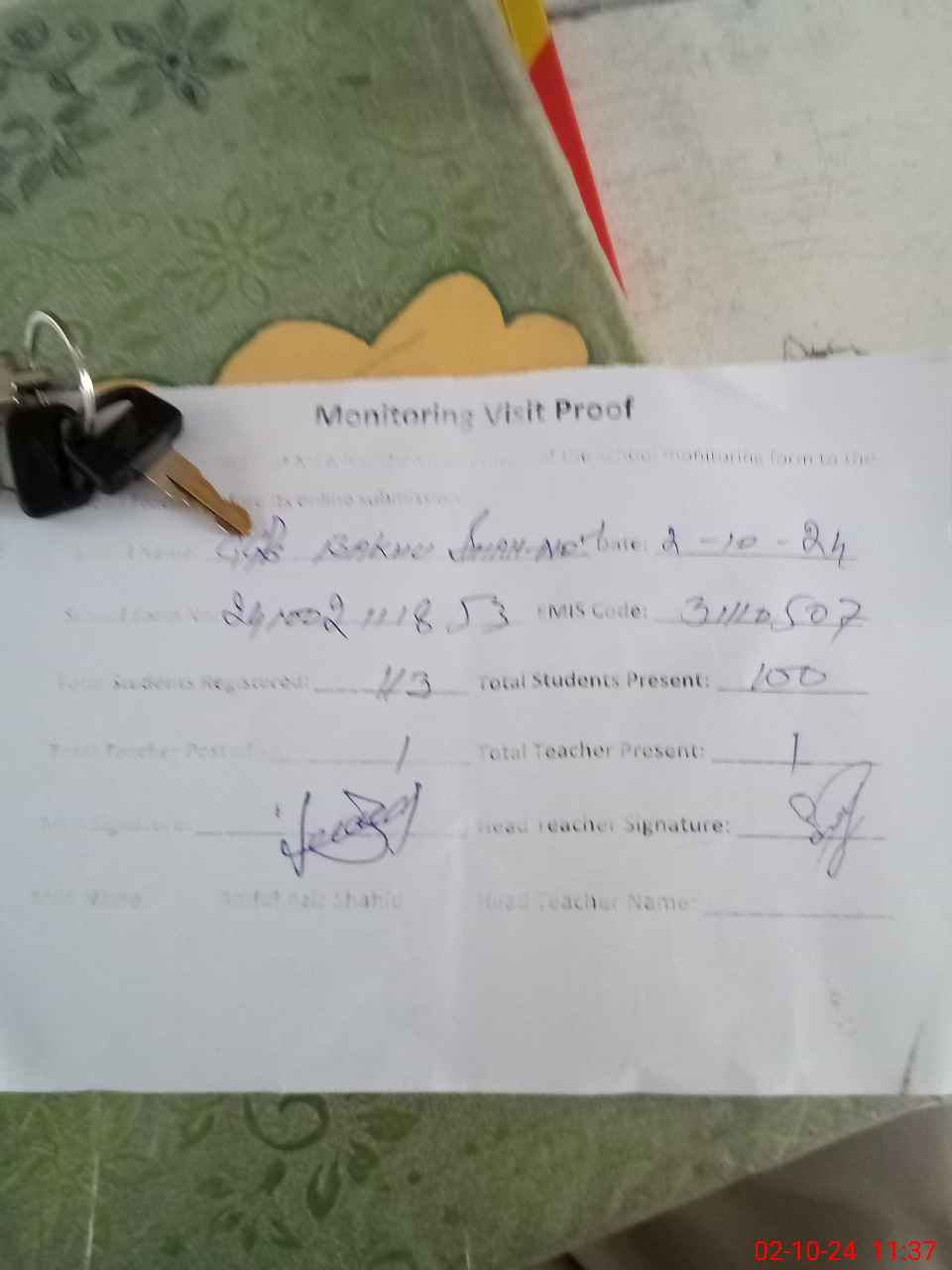 | EMIS Code: 31110507 | Name of School: GGPS BAKHOO SHAH | |||