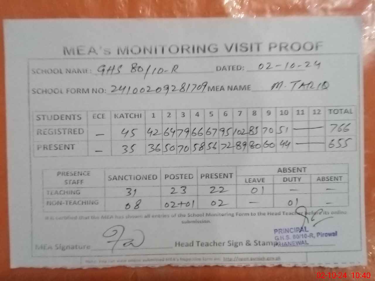 | EMIS Code: 36420025 | Name of School: GHS 80/10-R, KACHA KHUH | |||