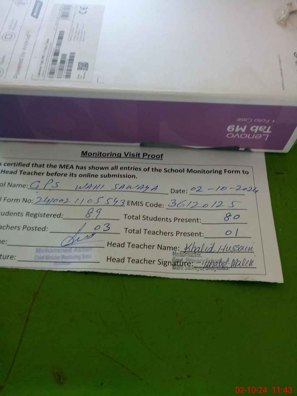 | EMIS Code: 36120125 | Name of School: GPS WAHI SAWAYA P/O RAJARAM SHUJA ABAD | |||