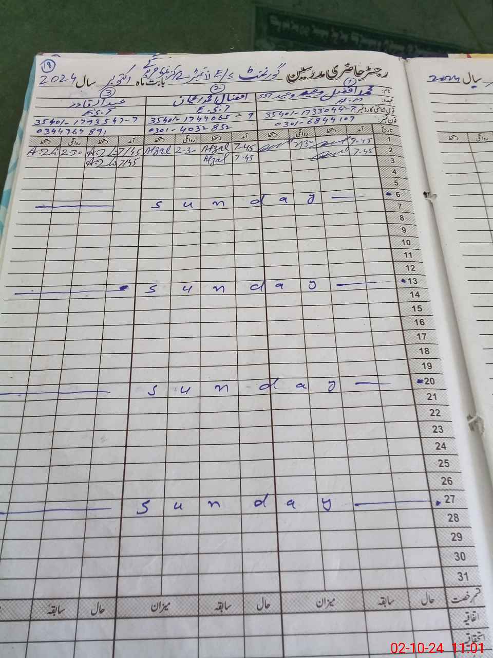 | 35**** | MSu**** | Chuokidar | Regular | 0 | 0 | 30 | 0 | 0 | 0 | 0 | 0 | 0 | Absent (Un-Authorized) |