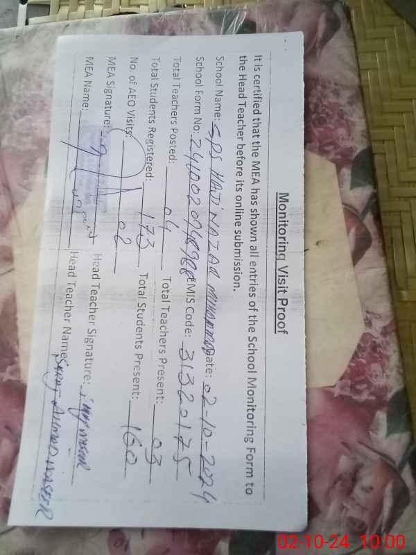| EMIS Code: 31320175 | Name of School: GPS HAJI NAZAR MUHAMMAD | |||
