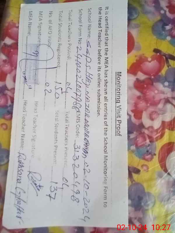 | Attendance Register | Head Teacher | MEA with School | Visit Proof |