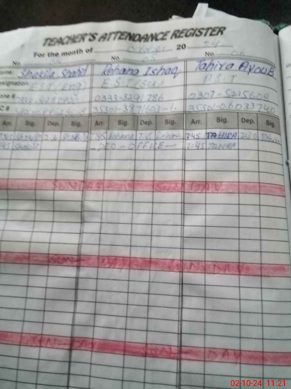 | CNIC | Full Name | Designation | R/C | Absence During Last Calender Month |