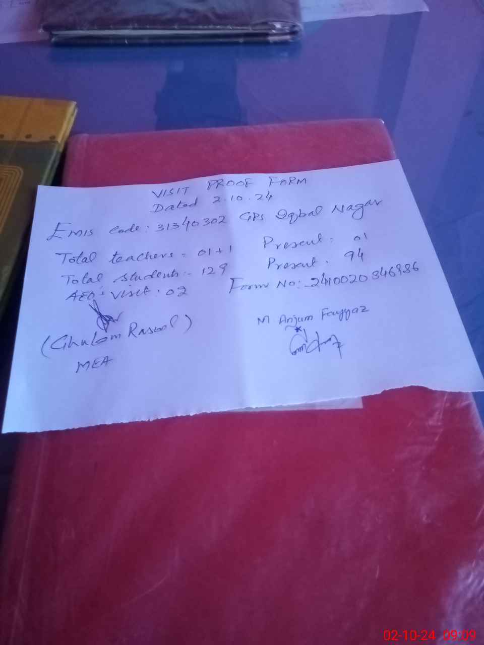 | EMIS Code: 31340302 | Name of School: GPS IQBAL NAGHAR | |||