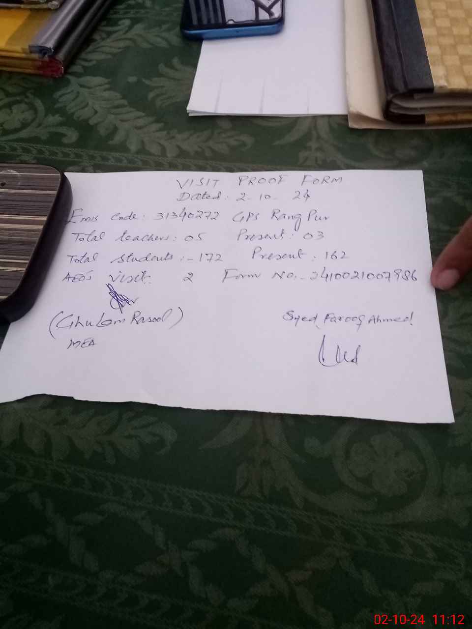 | EMIS Code: 31340272 | Name of School: GPS RANG PUR | |||