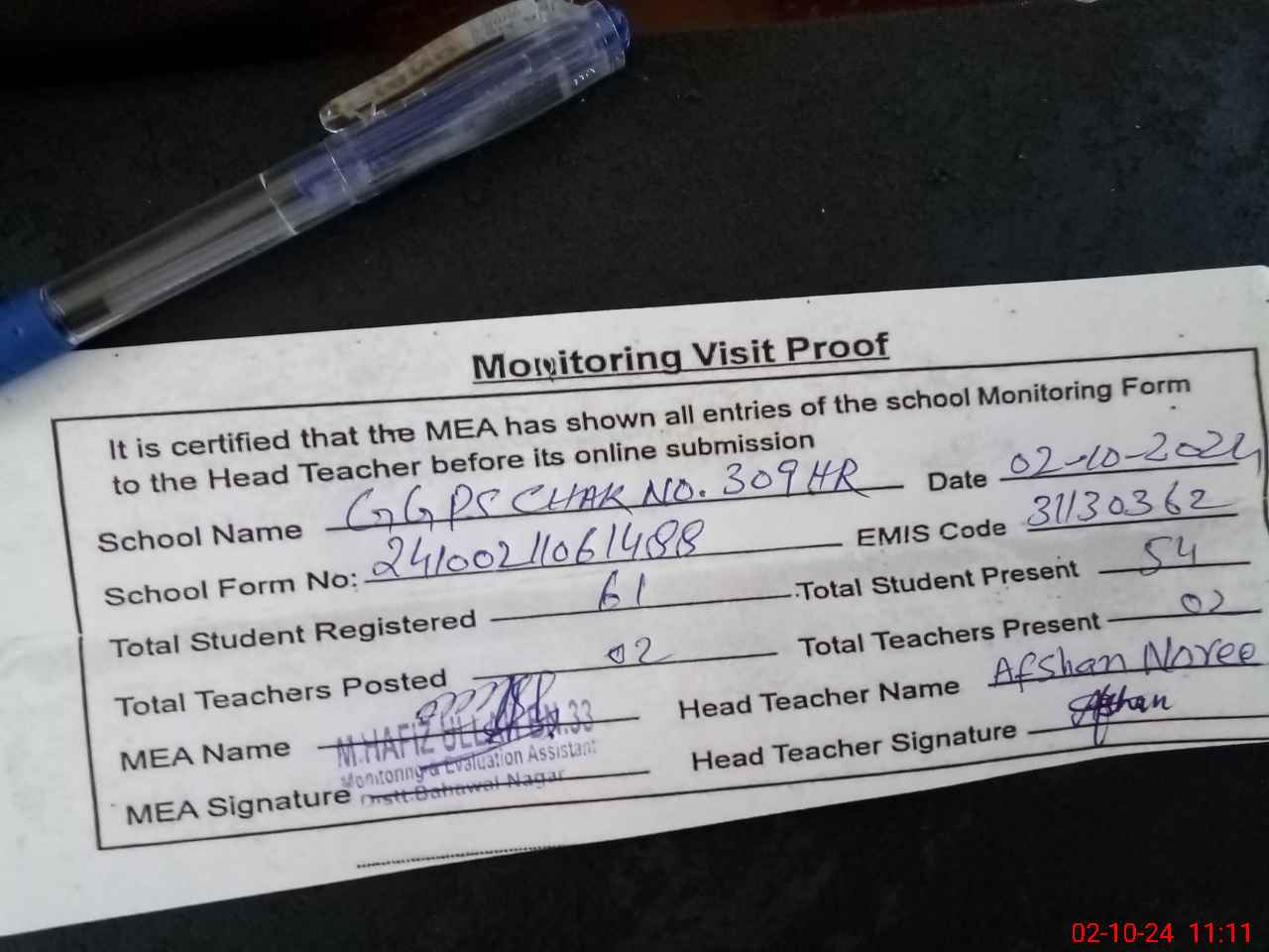 | EMIS Code: 31130362 | Name of School: GGPS CHAK 309/HR | |||