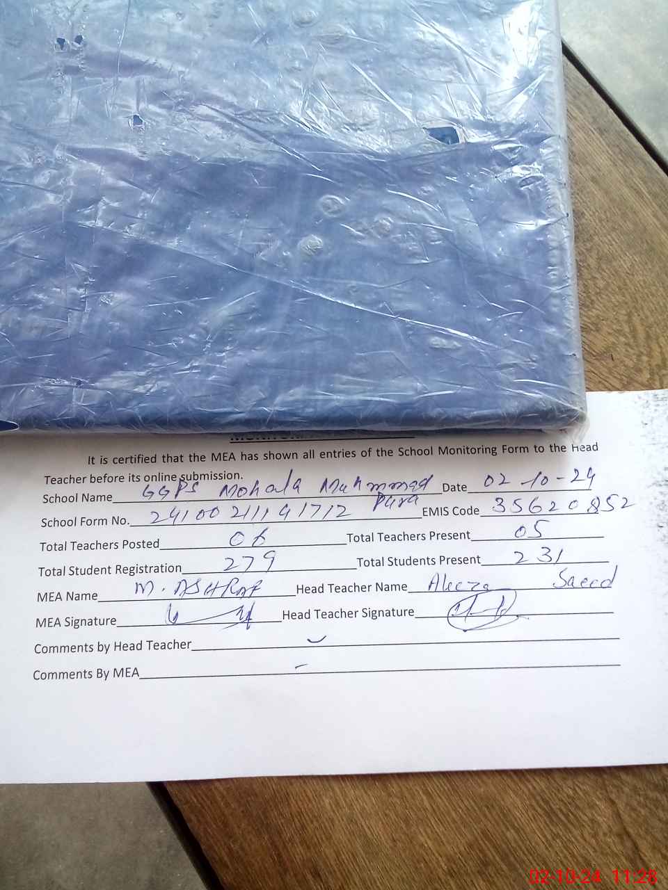 | EMIS Code: 35620852 | Name of School: GGPS MOHALAH MUHAMMAD PURA | |||