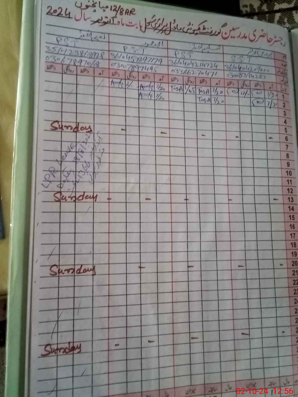 | CNIC | Full Name | Designation | R/C | Absence During Last Calender Month |