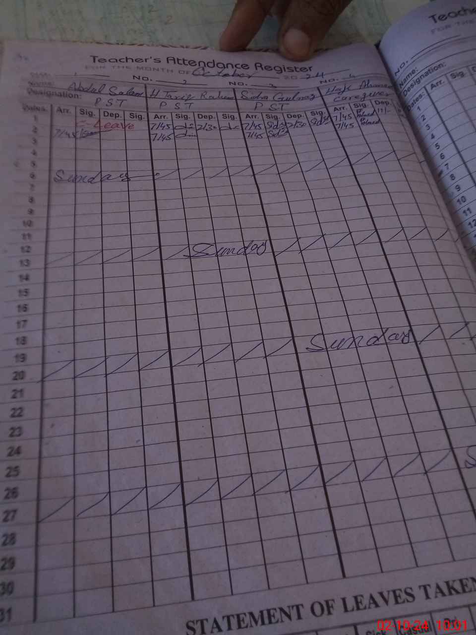| Name: AB**** SA**** Designation: (School Headmaster's/Headmistress's) PST Phone/Cell Number: 03**** |