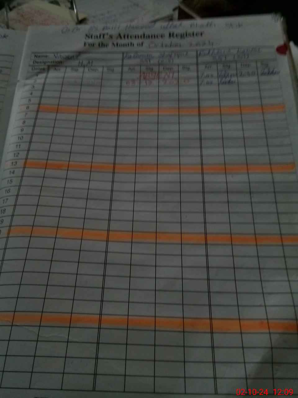 | CNIC | Full Name | Designation | R/C | Absence During Last Calender Month |