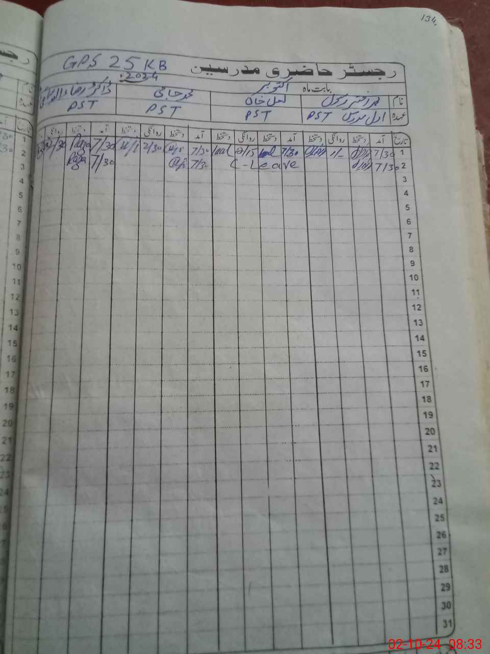 | CNIC | Full Name | Designation | R/C | Absence During Last Calender Month |