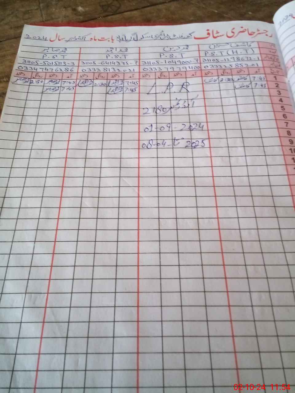 | CNIC | Full Name | Designation | R/C | Absence during last cal. month |