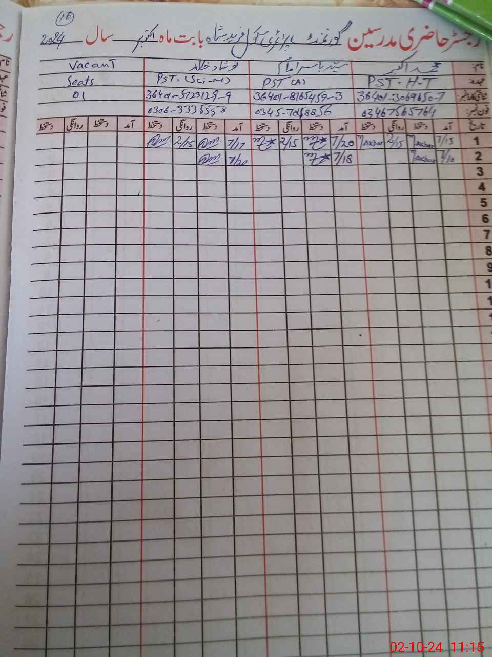 | Name: MU**** AK**** Designation: (School Headmaster's/Headmistress's) PST Phone/Cell Number: 03**** |