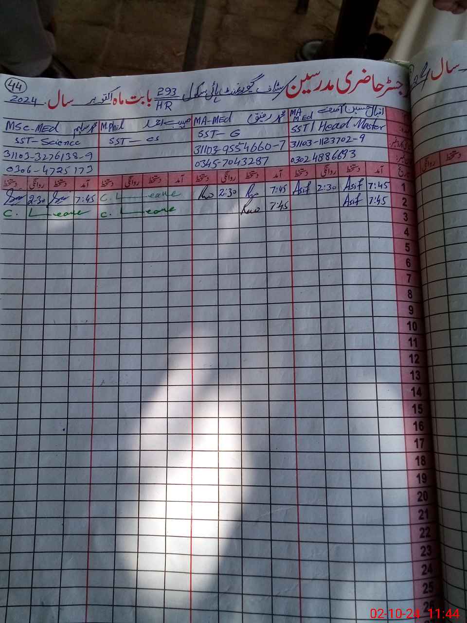 | Name: IQ**** HU**** Designation: (School Headmaster's/Headmistress's) S.S.T.(Arts) Phone/Cell Number: 03**** |