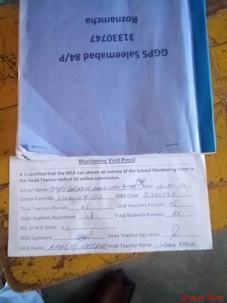 | EMIS Code: 31330747 | Name of School: GGPS SALEEM ABAD (Dera Mian Yousaf Ali 84/p) | |||