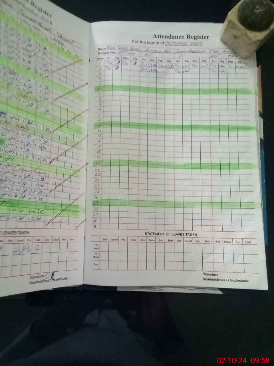 | Name: M.TA**** JA**** Designation: (School Headmaster's/Headmistress's) S.S.T.(general) Phone/Cell Number: 03**** |