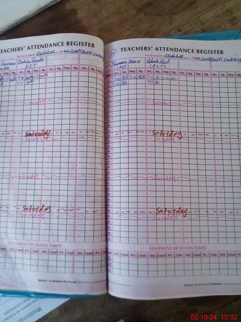 | Name: KH**** PA**** Designation: (School Headmaster's/Headmistress's) PST Phone/Cell Number: 03**** |
