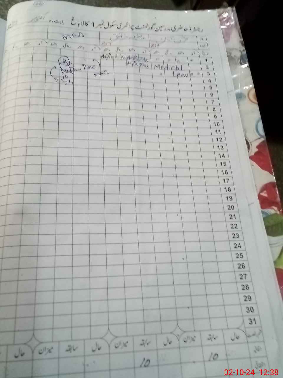 | Leave | Duty | Absent | Maternity | Medical | Ex- Pak |