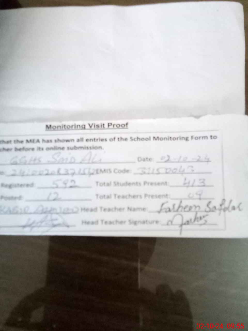 | EMIS Code: 31150043 | Name of School: GGHS SAID ALI | |||
