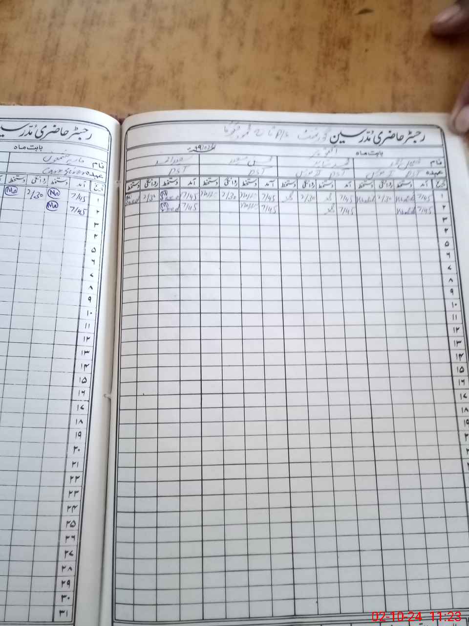 | CNIC | Full Name | Designation | R/C | Absence During Last Calender Month |
