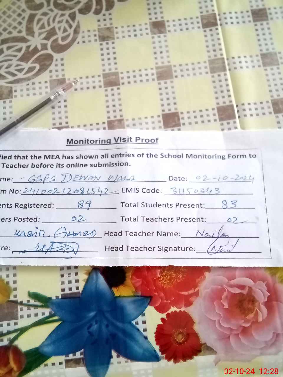 | EMIS Code: 31150343 | Name of School: GGPS BASTI DEWAN WALA | |||