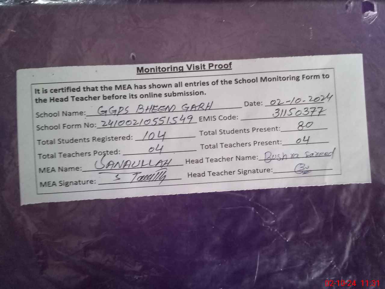 | EMIS Code: 31150377 | Name of School: GGPS BHEEM GARH | |||