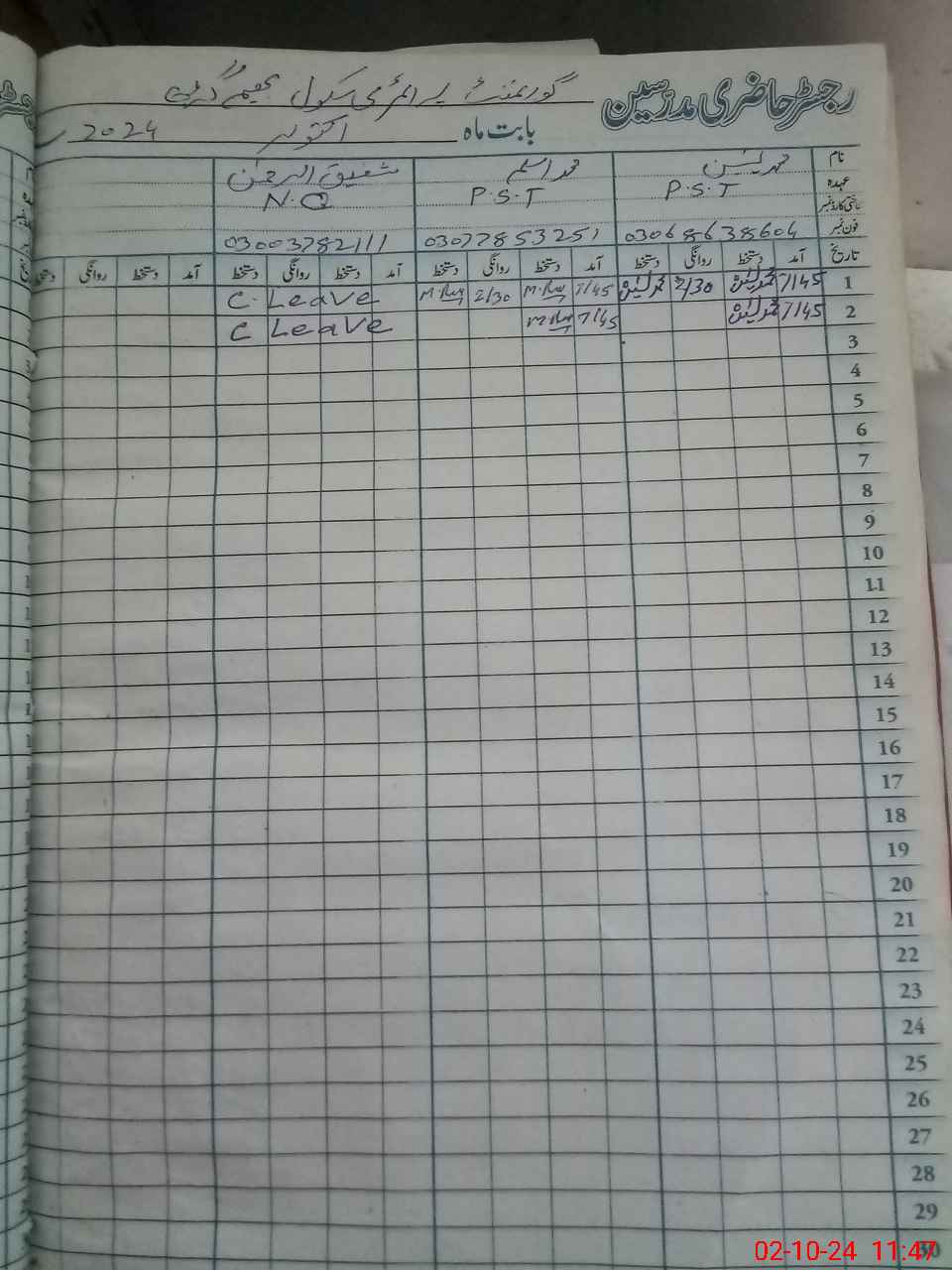 | Name: Mu**** As**** Designation: (School Headmaster's/Headmistress's) PST Phone/Cell Number: 03**** |