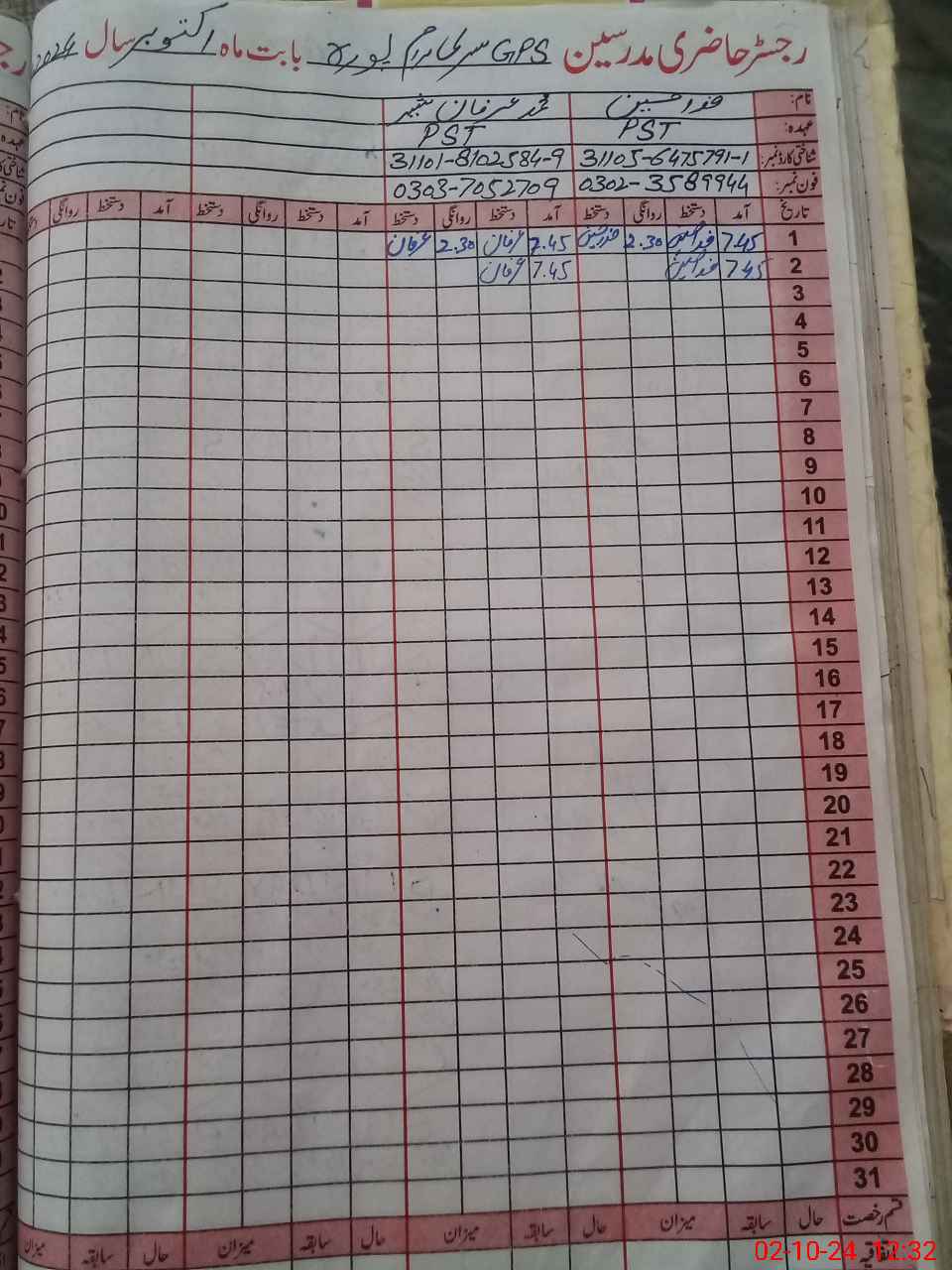 | Name: FI**** HU**** Designation: (School Headmaster's/Headmistress's) PST Phone/Cell Number: 03**** |