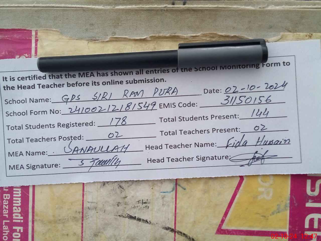 | EMIS Code: 31150156 | Name of School: GPS SIRI RAM PURA | |||