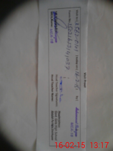 | Certified that this School was Inspected by the Undersigned MEA/DMO Today and the Information Stated Above is as Per Record. | |||||