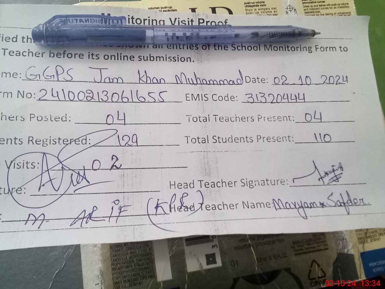 | Attendance Register | Head Teacher | MEA with School | Visit Proof |