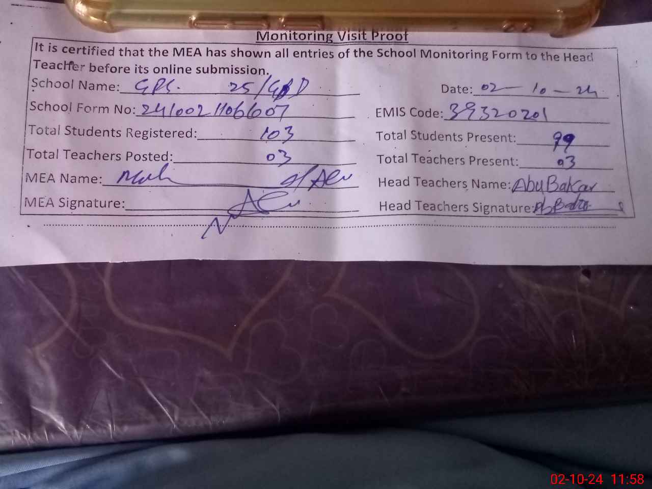 | EMIS Code: 39320201 | Name of School: GPS CHAK 25/G.D | |||