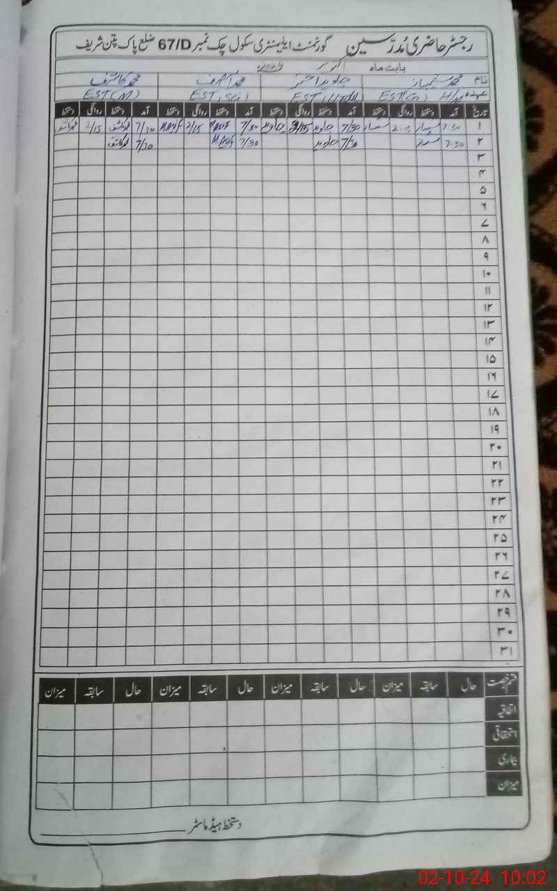 | Name: Mu**** Sh**** Designation: (School Headmaster's/Headmistress's) EST Phone/Cell Number: 03**** |