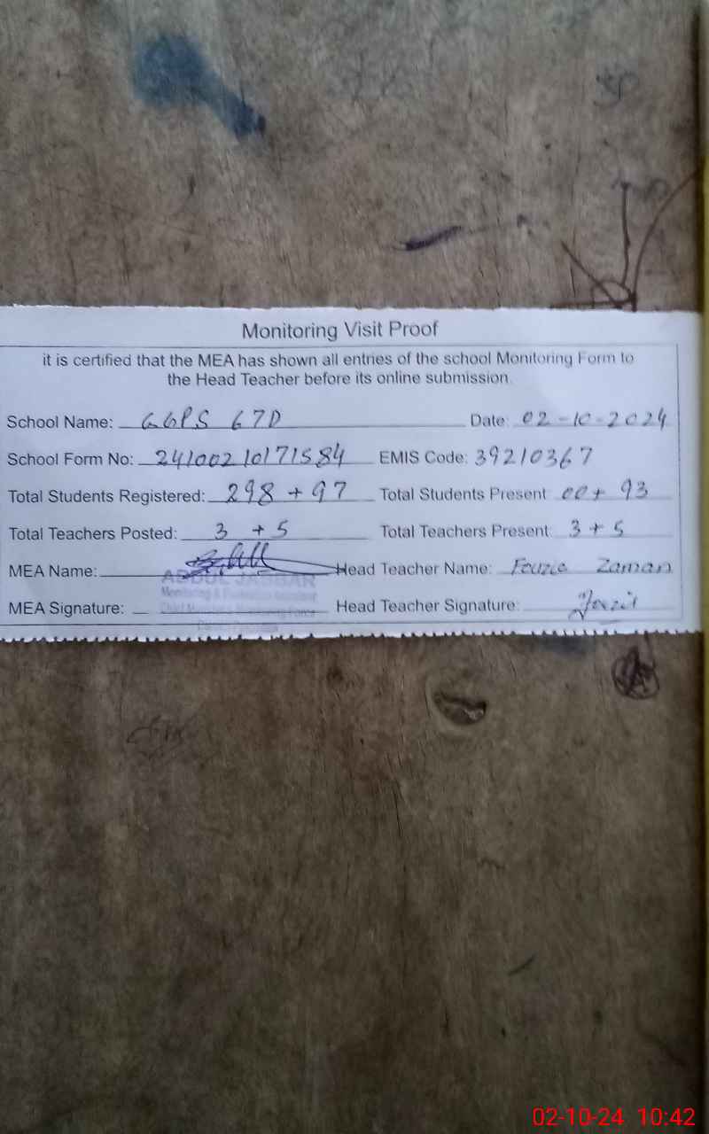 | EMIS Code: 39210367 | Name of School: GGPS 67 D | |||
