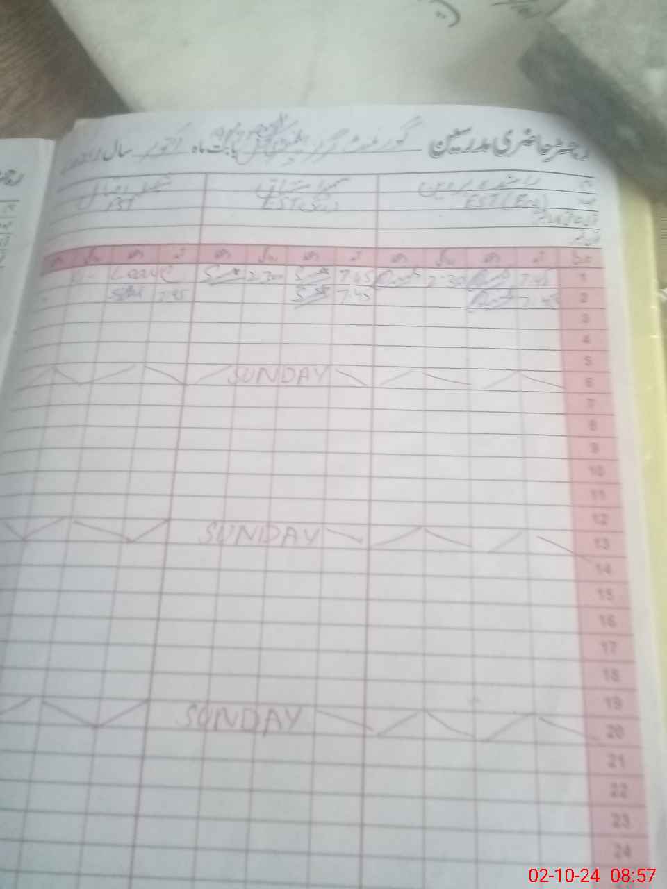 | CNIC | Full Name | Designation | R/C | Absence During Last Calender Month |
