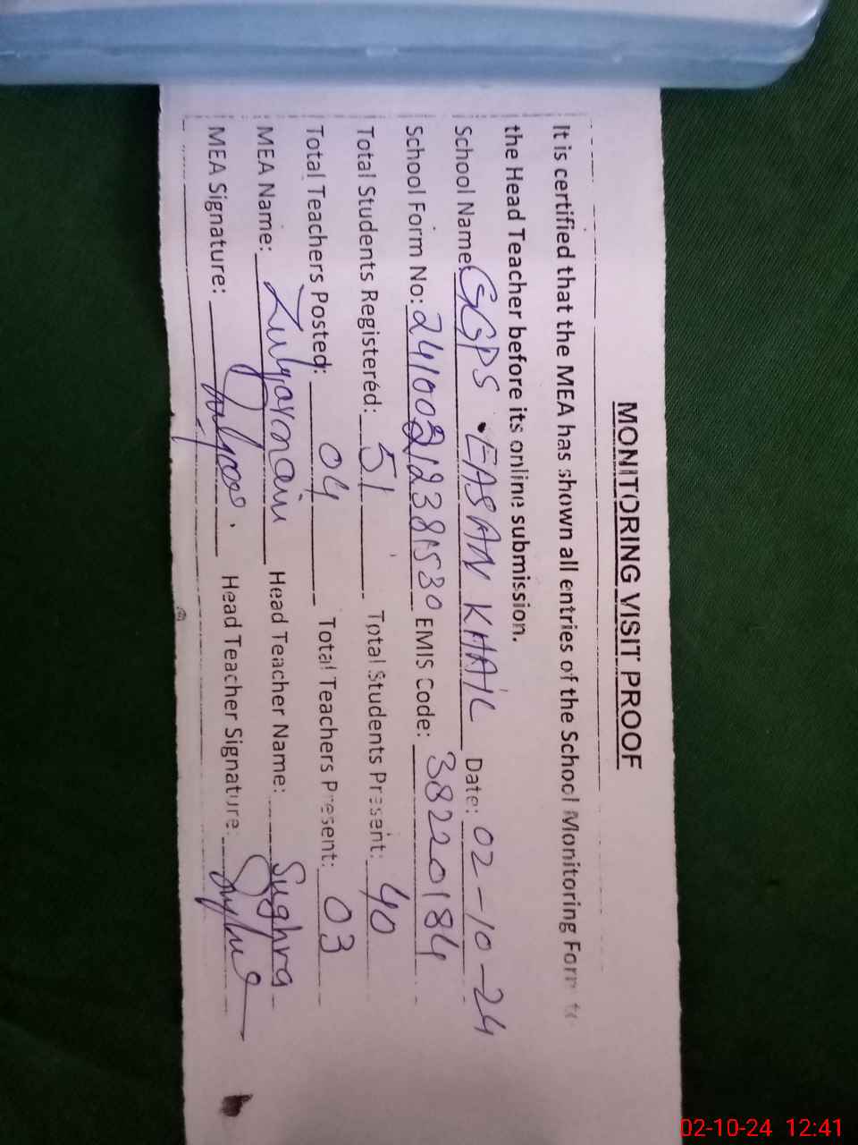 | EMIS Code: 38220184 | Name of School: GGPS EASAN KHAIL | |||
