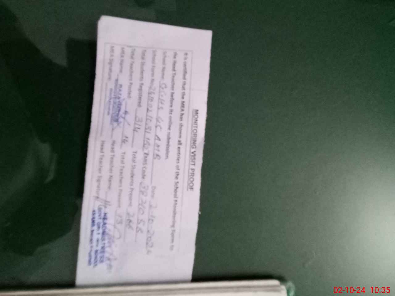 | Certified that this School was Inspected by the Undersigned MEA/DMO Today and the Information Stated Above is as Per Record. | |||||