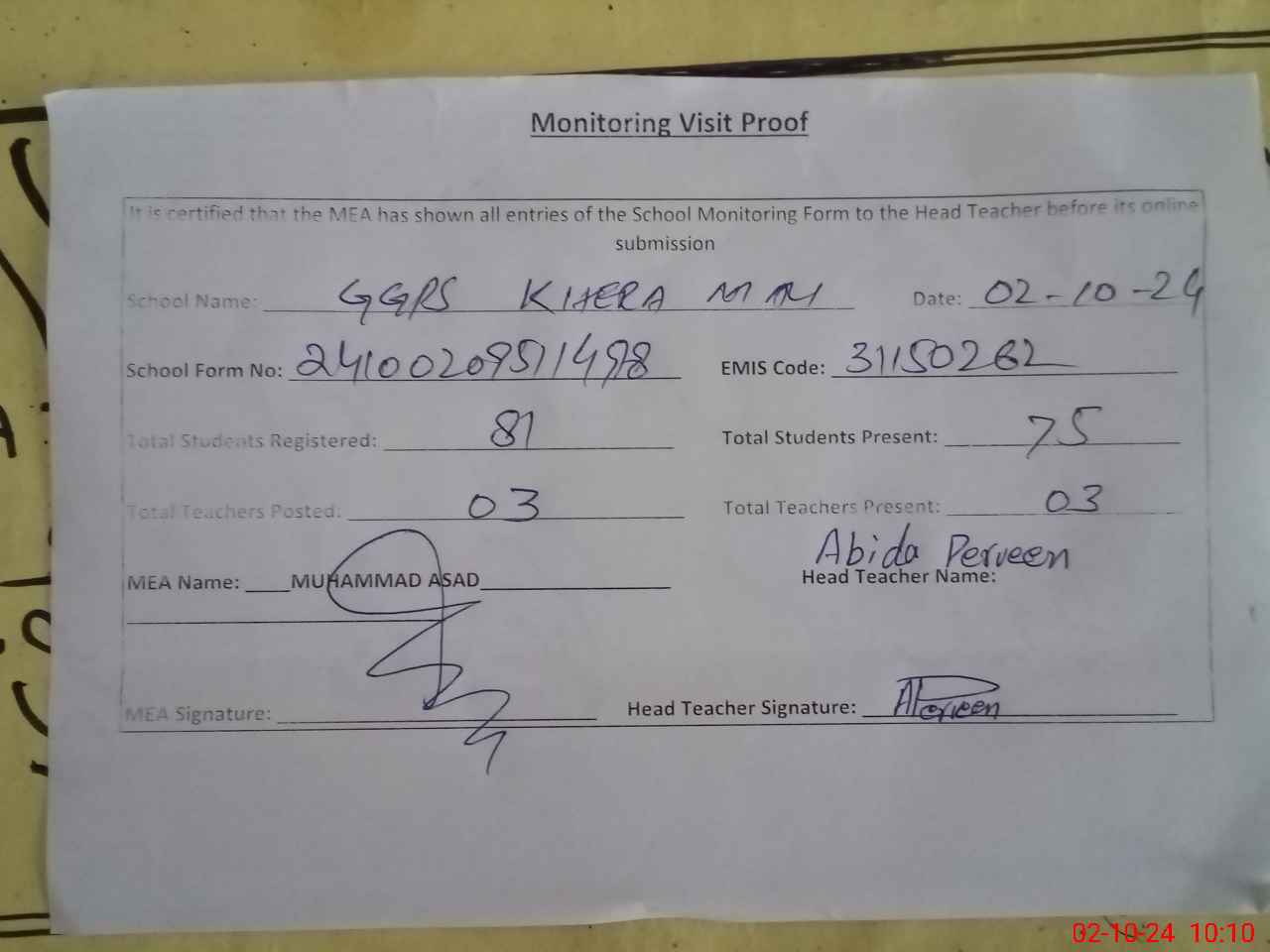 | EMIS Code: 31150262 | Name of School: GGPS KHERA MUHAMMAD ALI | |||