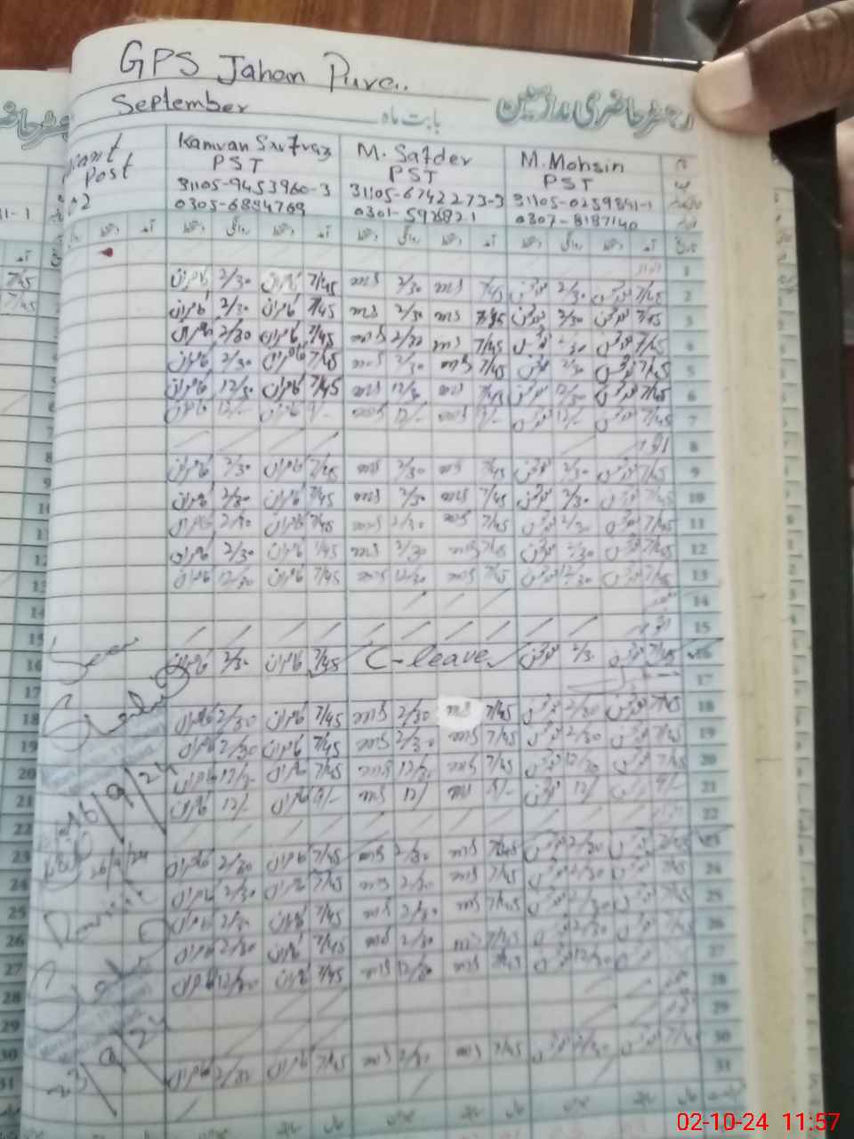 | CNIC | Full Name | Designation | R/C | Absence during last cal. month |