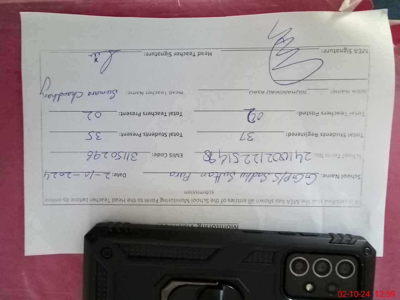 | Name: Ma**** Kh**** Designation: (School Headmaster's/Headmistress's) PST Phone/Cell Number: 03**** |